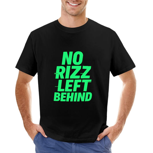 Men's T-Shirt 100% Cotton No Rizz Left Behind Graphic Tee for Casual Wear, Fitness, and Everyday Comfort, Soft and Breathable Cotton Fabric, Stylish and Durable Design