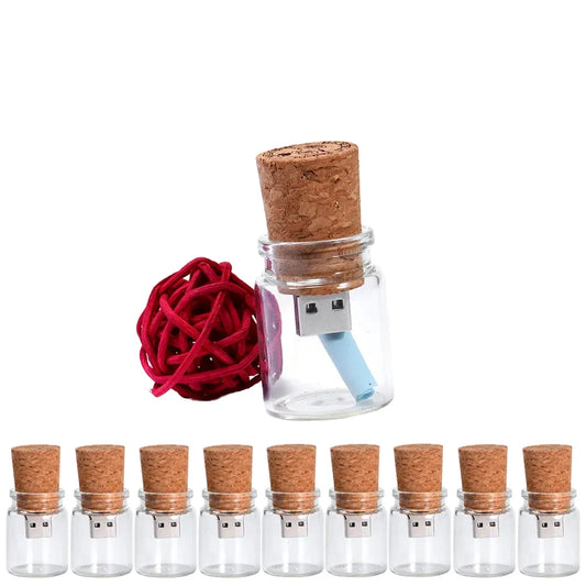 10PCS Glass Bottle USB Flash Drives - 128GB, 64GB, 32GB Memory Capacity for Laptop, PC, TV, Waterproof and Novelty Design for Weddings, Business, Creative Gift