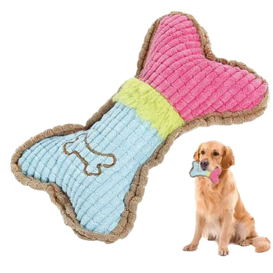Regular price £14.99Regular priceUnit price / per£0.99Sale price £14.99**Introducing the Product:** Bring joy into your pup's life with our specially designed plush bone chew toy, crafted for gentle play and endless fun. **Key Features:** This plush toy is crafted from ultra-soft fleece, creating a comforting yet tough chewing surface for your furry companion. Light in weight, it is easy for small dogs to carry around or toss, providing plenty of playful flexibility. The hidden squeaker adds an engaging element, captivating your dog's attention with every squeeze. Completely free of harmful substances, this toy ensures a safe play environment. **Compatibility & Usage:** Ideal for teething puppies and small dogs, this toy supports healthy dental habits while satisfying instinctual chewing needs. Shaped like a bone, it appeals to your pet's natural preferences, ensuring hours of engaging fun. This versatile toy is perfect for both indoor and outdoor adventures, offering a consistent source of entertainment wherever you go. **Gift-Ready Options:** Looking for the perfect gift for a dog lover? This delightful chew toy makes a thoughtful present for any occasion. Pre-packaged in a charming gift-ready manner, it’s a wonderful way to show appreciation to your furry friend or a fellow pet enthusiast. **Why You’ll Love It:** Choose this plush chew toy for a blend of entertainment, safety, and comfort. Designed to stimulate both mental and physical engagement, it helps in alleviating boredom and reducing destructive behaviours. With its durable construction and soothing texture, this toy is a lovable addition to any dog's collection, promising excitement and happiness with every wag of the tail.