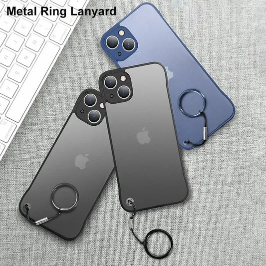 Ultra Thin Frameless Matte Hard PC Phone Case with Ring for iPhone 14/15/16 Plus, Pro, Max – Shockproof & Scratch Resistant