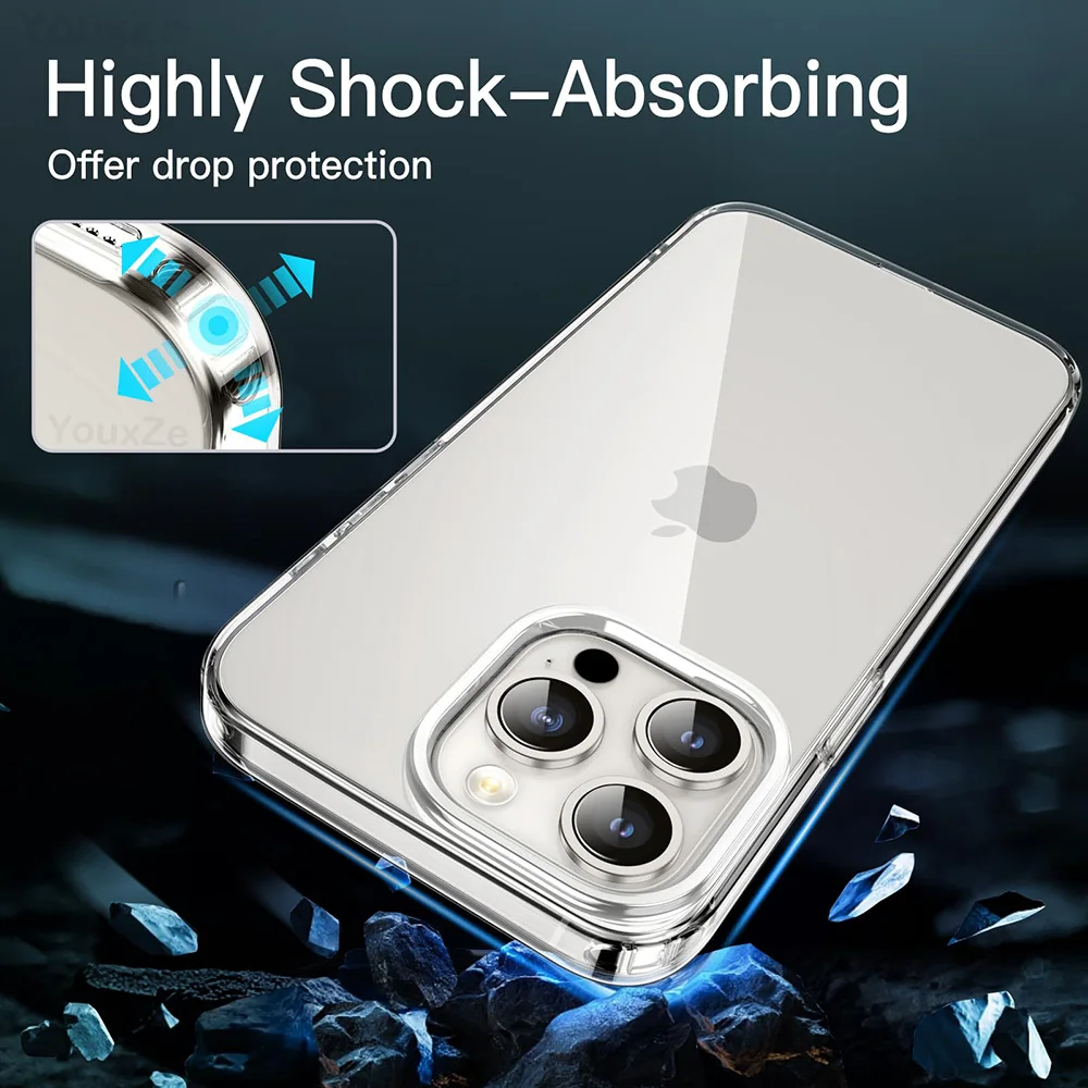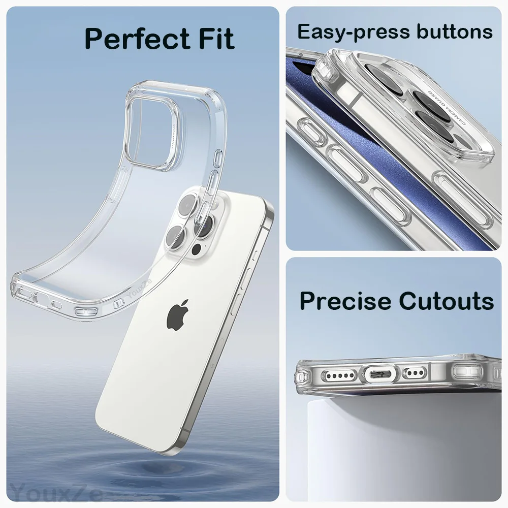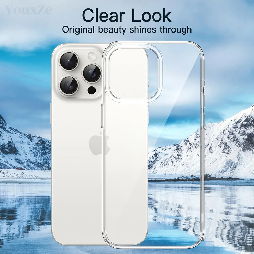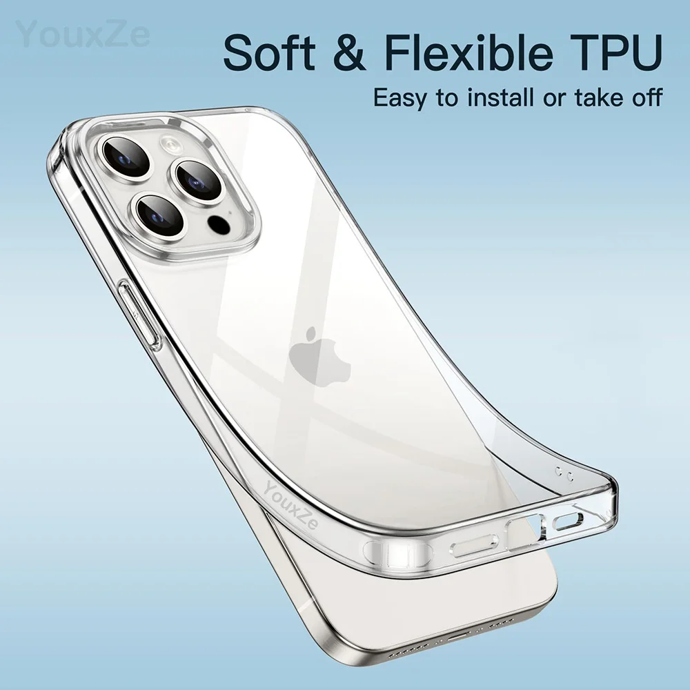 Ultra Slim Transparent Silicone Case for iPhone 14/15/16 Plus, Pro, Max - Soft TPU, Anti-Fingerprint, Dustproof