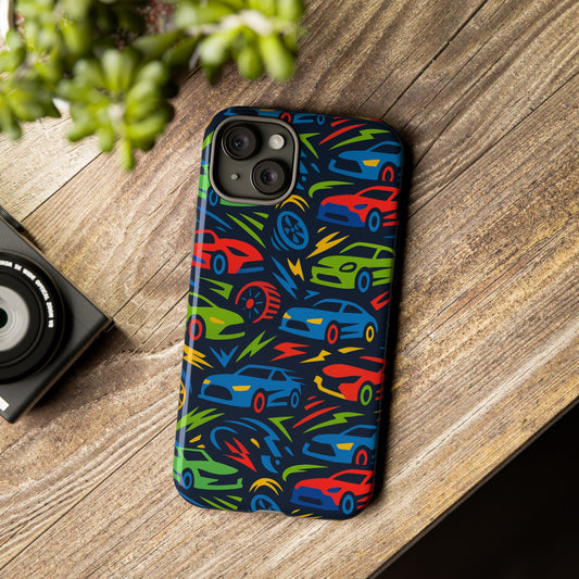 Vibrant 3D Car Pattern Protective Phone Case for Expressive Individuals Stylish Accessory Compatible with iPhone 13, 14, 15 & 16 – all models including Pro, Pro Max & Plus