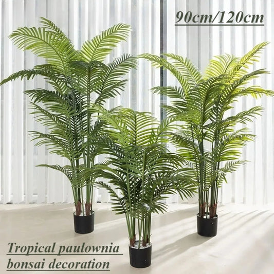 Regular price From £142.99Regular priceUnit price / per£0.99Sale price From £142.99Bring a touch of the tropics into your space with this stunning artificial palm tree, perfect for creating a serene natural ambiance all year round. Introducing the Product: Discover the elegance of our Artificial Palm Tree, available in heights of 90cm or 120cm, designed to elevate any indoor or garden setting. With its lifelike, scattered tail design, this decorative piece offers the beauty of nature without the upkeep. Key Features: Crafted from durable, high-quality plastic, this realistic tropical plant features nine detailed leaves that capture the essence of a natural palm. Its robust construction ensures it maintains its vibrant look, making it a timeless addition to your decor. Whether you're using it to complement your living room, revamp your office, or enhance a special event, this plant brings a refreshing and sophisticated touch. Compatibility & Usage: This artificial palm tree is versatile, suiting various environments such as home interiors, gardens, exhibition displays, and bonsai decorations. Its floor placement capability allows it to stand out as a focal point, seamlessly fitting into spaces both large and small. Ideal for outdoor use in sheltered areas, it provides an instant upgrade to patios or conservatories. Gift-Ready Options: Looking for a thoughtful gift? This artificial plant is an excellent choice for friends or family who appreciate hassle-free greenery. Packaged to leave a lasting impression, it's perfect for housewarmings, anniversaries, or seasonal celebrations. Why You'll Love It: Enjoy the lush appearance of this palm without the stress of watering or pruning. Its timeless appeal and maintenance-free nature make it a practical and stylish choice for modern living. Embrace the calming influence of greenery in your environment and -