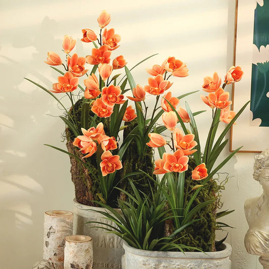Regular price £22.99Regular priceUnit price / per£0.99Sale price £22.99Bring a touch of elegance and timeless beauty to your space with these stunning Artificial Orchid Flowers. **Introducing the Product** These exquisite artificial orchid flowers are meticulously crafted from premium silk, offering a realistic and graceful touch to any environment. Ideal for enhancing your home, office, or special occasions, these 3D printed, real touch pink cymbidium branches will effortlessly elevate your decor. **Key Features** - **Real Touch Feel**: The realistic texture and soft touch of these flowers create an authentic floral experience. - **Vibrant Colour**: The delicate pink hue adds a lively accent to your decor. - **Durable Material**: Made with high-quality silk and a sturdy plastic stem, these floral branches promise long-lasting beauty. **Compatibility & Usage** Measuring 50cm in length, this artificial orchid branch is perfectly suited for indoor floral arrangements, making it an excellent centrepiece for weddings, anniversaries, and housewarming parties. With seven intricately detailed flower heads, it brings a full and lush appearance to any vase or decorative setting. **Gift-Ready Options** Whether celebrating a birthday, graduation, or bridal shower, this silk orchid branch makes a thoughtful and charming gift. Its elegant packaging ensures it arrives ready to impress, ideal for delighting friends and family on any occasion. **Why You’ll Love It** These artificial orchid flowers offer a hassle-free alternative to fresh blooms, with no need for watering or maintenance. Perfect for allergy sufferers, they provide the soothing beauty of orchids without the pollen. Enhance your space with ease, and enjoy the everlasting charm and elegance that these realistic silk flowers bring to your home or event. -