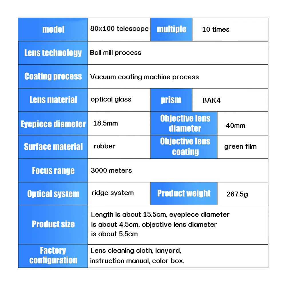 Don't miss out on the chance to elevate your outdoor experiences. Order your B0B49MQYWX 80x100 HD Monocular today and discover the beauty of nature in stunning detail!