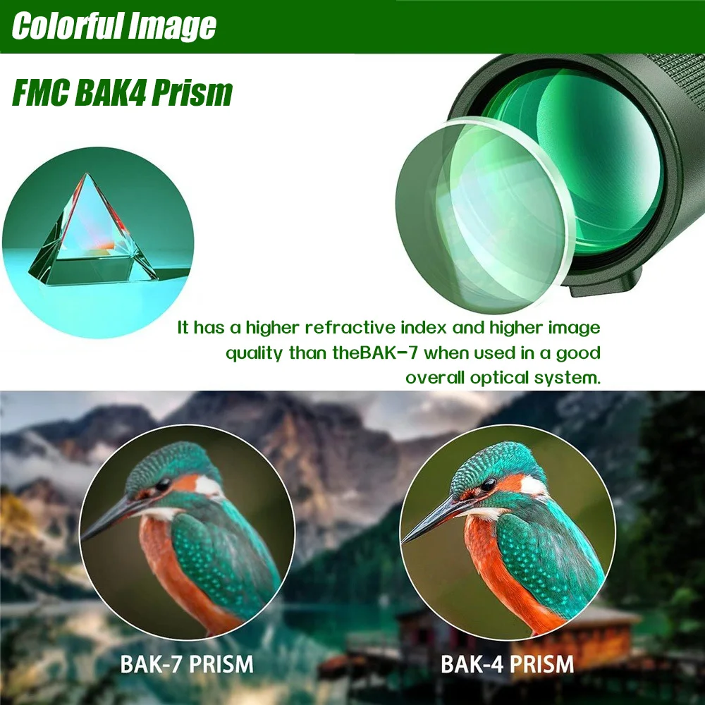 Equipped with a BAK4 prism, this monocular offers exceptional light transmission and clarity, ensuring that you capture stunning images. The 80x100 magnification allows for detailed observation from impressive distances, making it an essential tool for nature enthusiasts.