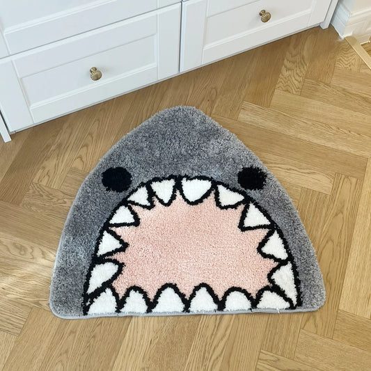 Cool Grey Shark Cute Tufted Rug Flocked Soft Non-Slip Handmade Carpet for Home Decoration Simple Housewarming Gift Idea Cartoon Style Room Mat