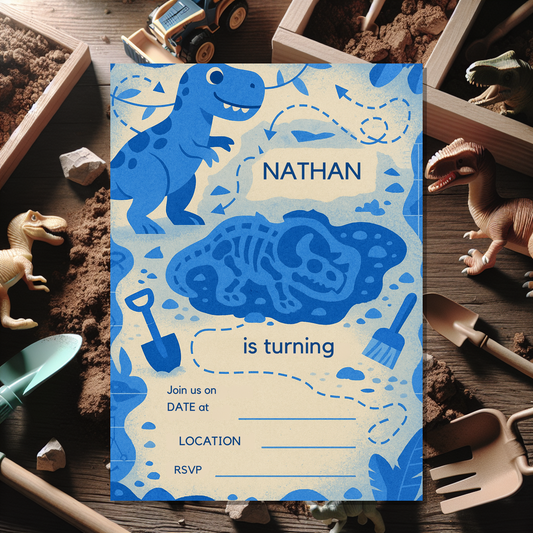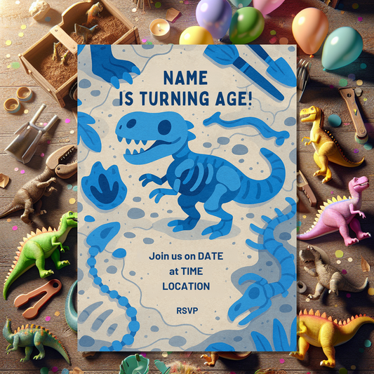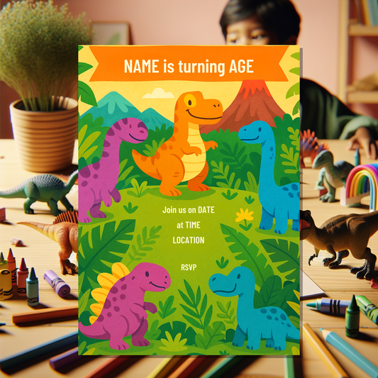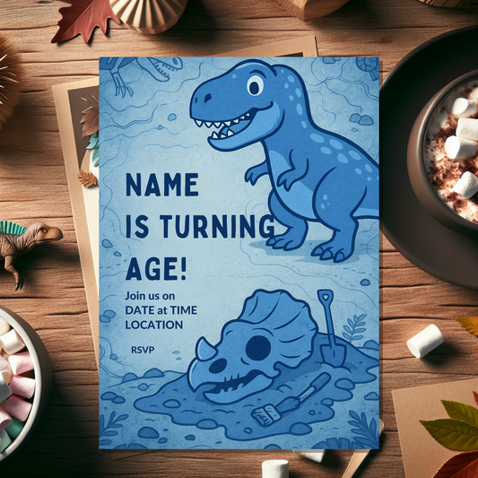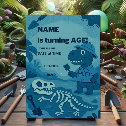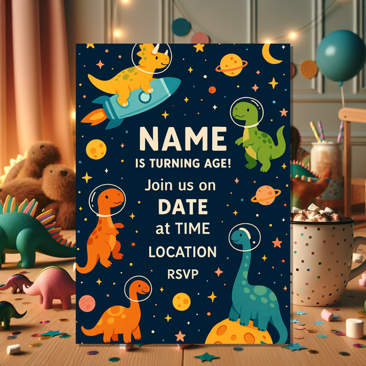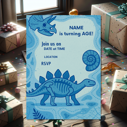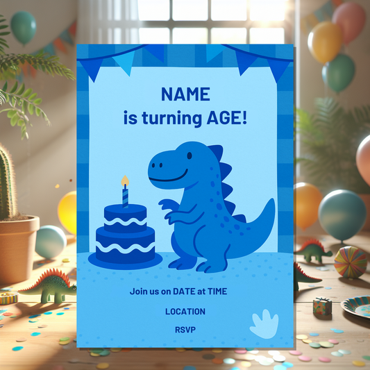 This dinosaur invitation card is ideal for parents, guardians, and party planners who want an easy, professional, and fun way to send out birthday invites with a prehistoric twist. Start personalising today and set the stage for an unforgettable adventure!