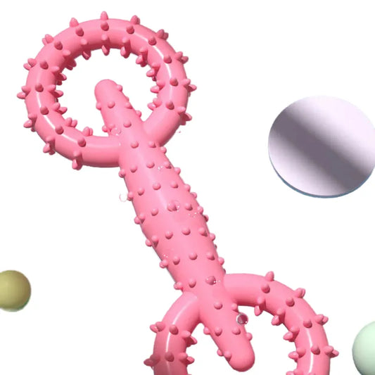 Regular price £17.99Regular priceUnit price / per£0.99Sale price £17.99Wrangle your pup's dental concerns with a chew toy that delivers durability and dental support all in one package. **Introducing the Product** This thoughtfully designed dog chew toy is a seamless blend of enjoyment and dental care, crafted from safe and hard-wearing TPR nylon to support oral health and provide your playful companion with hours of fun. **Key Features** Featuring a soft yet resilient TPR nylon composition, the chew toy is tailored to endure regular use while soothing your dog's teeth and gums. Its textured surface acts as a gentle cleaning aid, helping to reduce plaque and tartar while promoting fresh breath and healthy gums. The engaging design not only keeps your dog entertained but also contributes to mental stimulation. **Compatibility & Usage** A perfect match for all breeds and sizes, this versatile chew toy caters to puppies and adult dogs alike. Whether your furry friend enjoys fetching, chewing, or simply resting with their beloved toy, this product accommodates various play preferences, all while supporting an essential dental hygiene routine. **Gift-Ready Options** Offered in a spectrum of lively hues, this chew toy is an ideal gift choice for those devoted to canine companions. Its appealing look, paired with functional advantages, ensures it is a present that brings joy to both pets and their owners. **Why You’ll Love It** Integrate this chew toy into your dog's routine for a convenient boost to their dental wellness alongside ample entertainment. Its robust design is built to last, providing a dependable and enjoyable solution for better oral health over time. Experience the satisfaction of making a smart choice that combines safety, functionality, and fun for your beloved pet. -