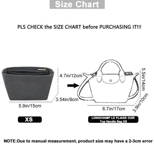 Felt Cloth Insert Bag For Longchamp LE PLIAGE CUIR Top Handle Bag XS Organizer Makeup Pouch Travel Inner Handbag Storage Divider