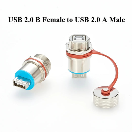 IP67 Waterproof Rugged USB 2.0 B to A Panel Mount Adapter, Female to Male Connector for Outdoor Use, Sealed Chassis Mount USB Coupler for Weatherproof Applications