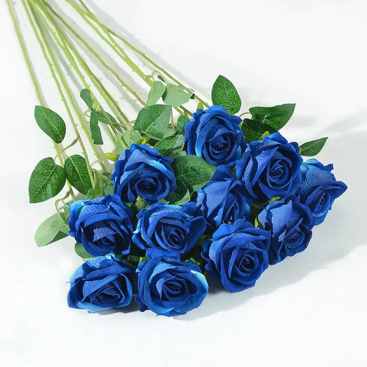 Regular price From £14.99Regular priceUnit price / per£0.99Sale price From £14.99Enhance your décor with elegance and charm using our lifelike silk blue roses, designed to elevate any setting with their timeless appeal. Introducing the Product Transform your spaces into a serene haven with our stunning silk blue rose artificial flowers. Crafted to perfection, these roses bring a touch of sophistication and everlasting beauty to your weddings, home, anniversary celebrations, birthdays, and parties. Key Features Each silk rose is meticulously crafted to mimic the delicate beauty of real flowers. They are made from high-quality silk, ensuring durability and a realistic appearance. The vibrant blue hue adds a pop of colour to any décor theme, making them perfect for various occasions. Available in convenient packs of 3 or 5 pieces, these artificial flowers offer flexibility for larger arrangements or simple, elegant accents. Compatibility & Usage Ideal for indoor use, these artificial roses are suited for a plethora of settings, including weddings, anniversaries, birthday celebrations, and home décor. Use them to create stunning centrepieces, enhance DIY floral arrangements, or adorn tables and mantels. With no need for water or sunlight, they maintain their beauty effortlessly in any room. Gift-Ready Options Our silk blue roses are a delightful gift choice for loved ones celebrating special moments. Perfectly suited for anniversaries, birthdays, or housewarming parties, these elegant flowers are sure to impress. Give the gift of timeless beauty with these striking and maintenance-free floral arrangements. Why You’ll Love It Embrace elegance and convenience with our silk blue roses, which offer the beauty of fresh flowers without the upkeep. Ideal for any occasion, they allow you to enjoy the charm and luxury of exquisite floral arrangeme -
