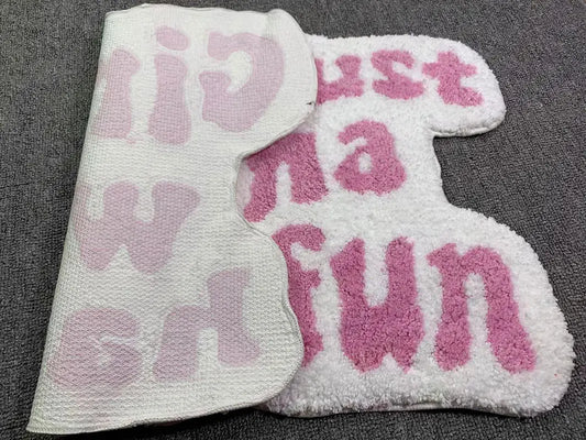 50x80cm Irregular Shaped Pink Letters Soft Aesthetic Carpet Flocked Room Door Mat Rug Three Styles Bedside Rug Non-Slip for Home Bathroom Floor Decor