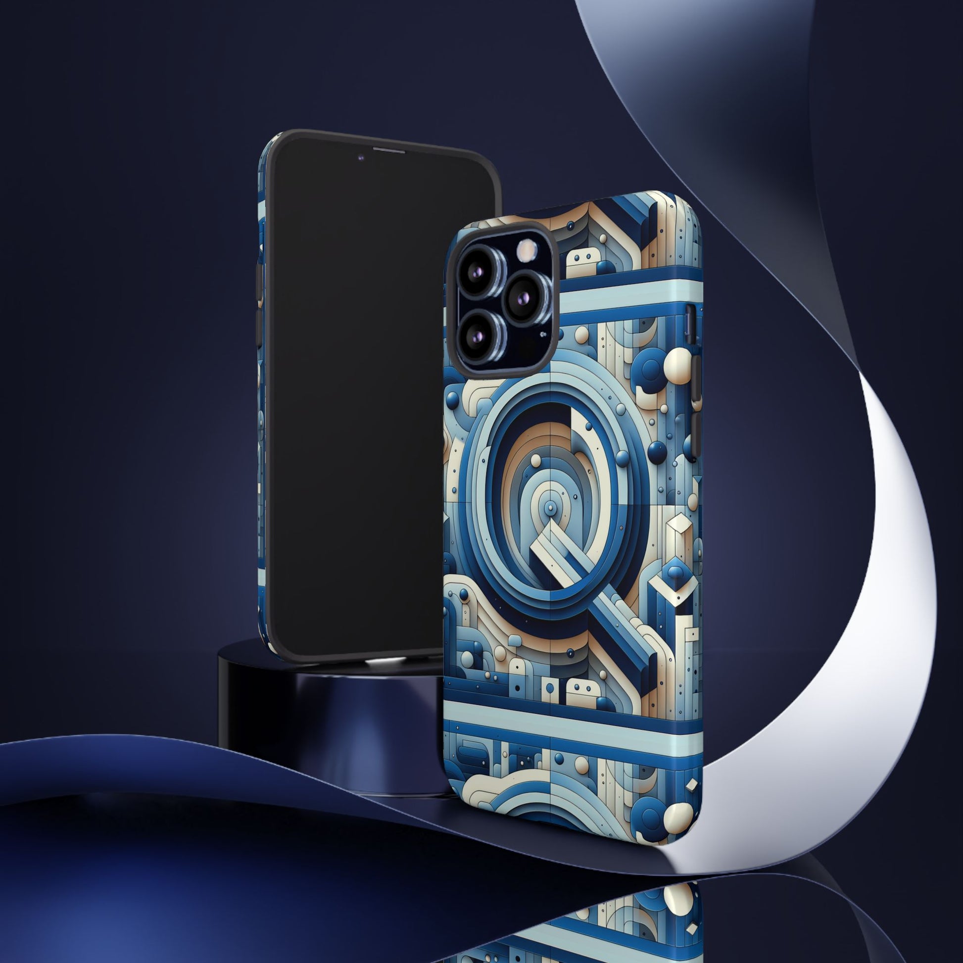 Blue Alphabet Q Phone Case for Android and iPhone Durable Shockproof Protective Cover with 3D Wrap Design