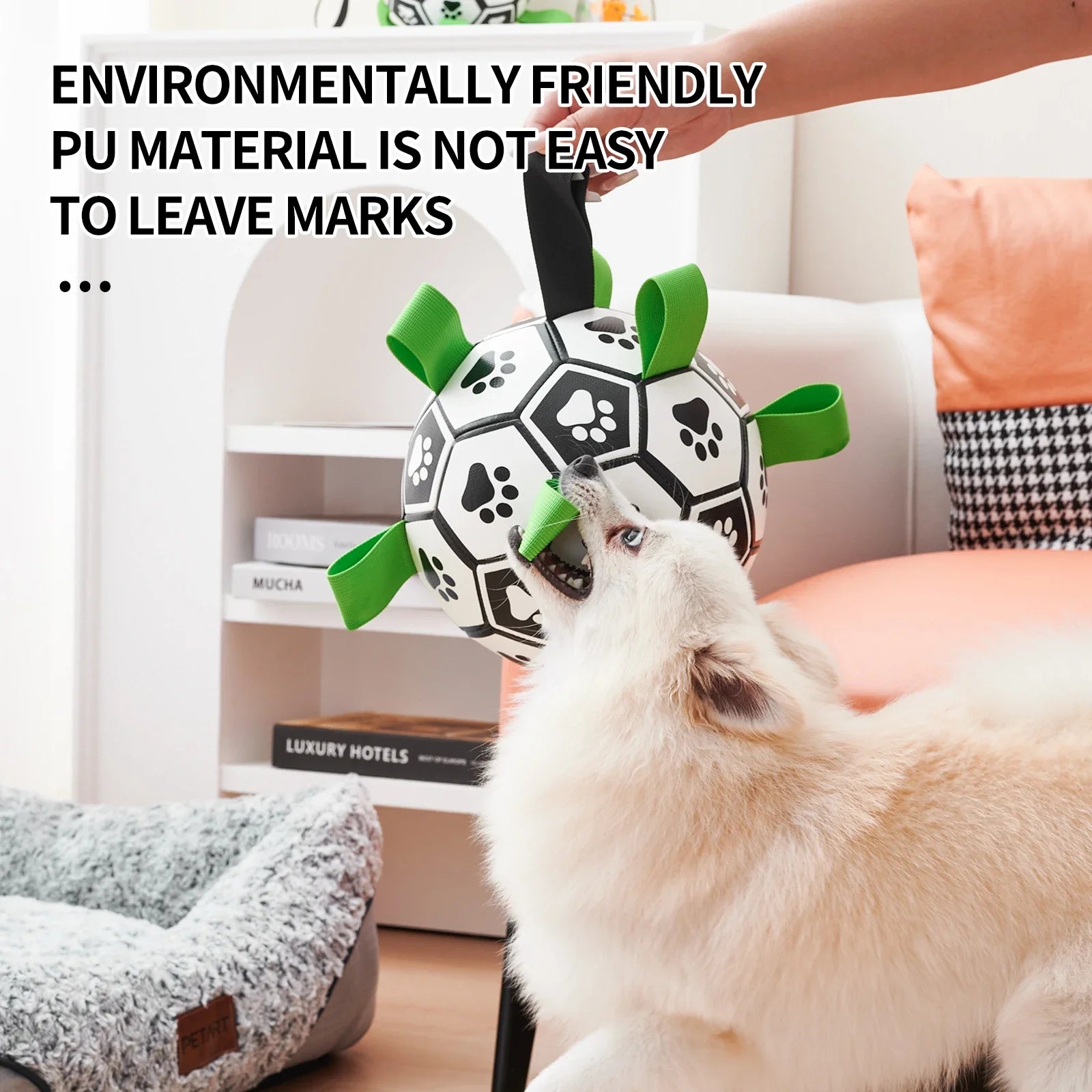 Interactive Leather Dog Soccer Ball with Tug Straps for Medium-Large Breeds, Durable Toy for Active Play, Perfect for Training, Engages & Entertains Dogs, Ideal Gift for Pet Owners