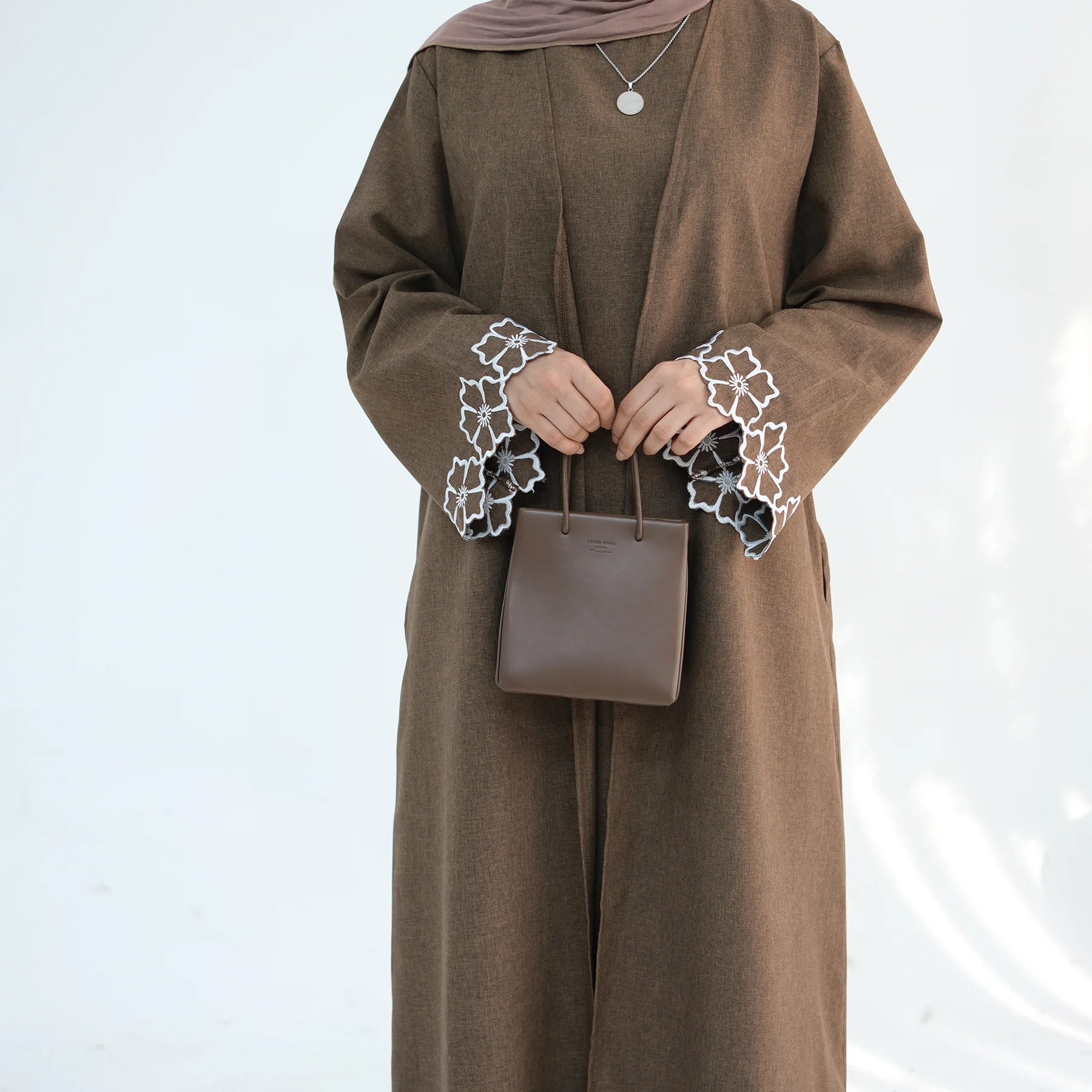 Elevate your style with our luxurious Eid Ramadan Turkey Morocco Islamic Coffee Gray Embroidery Abaya Dubai Luxury Muslim Flower Elegant Cardigan Robe Clothing. This exquisite piece is perfect for both special occasions and casual wear, offering a beautiful blend of elegance and comfort.