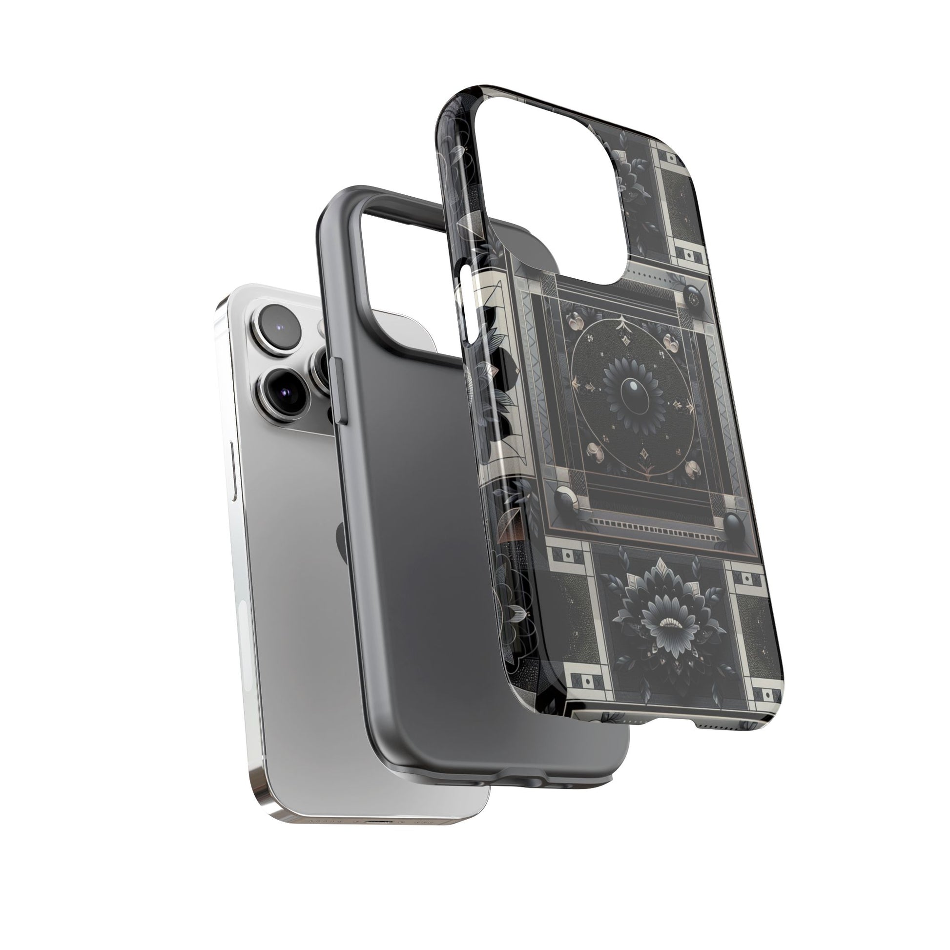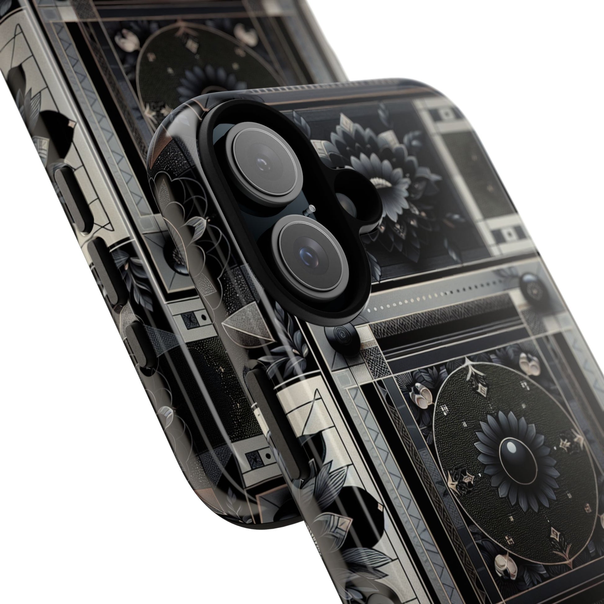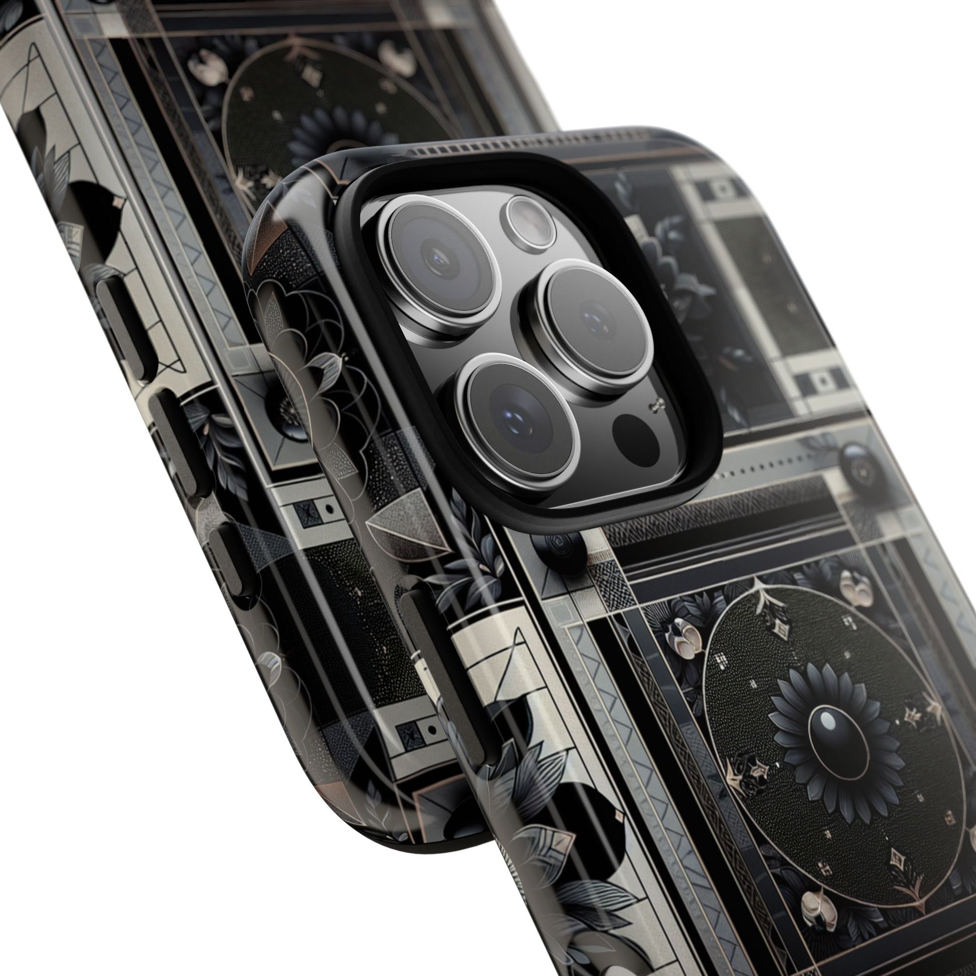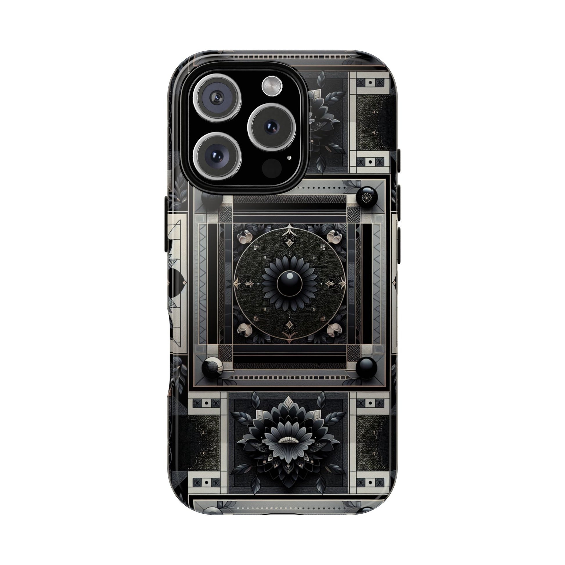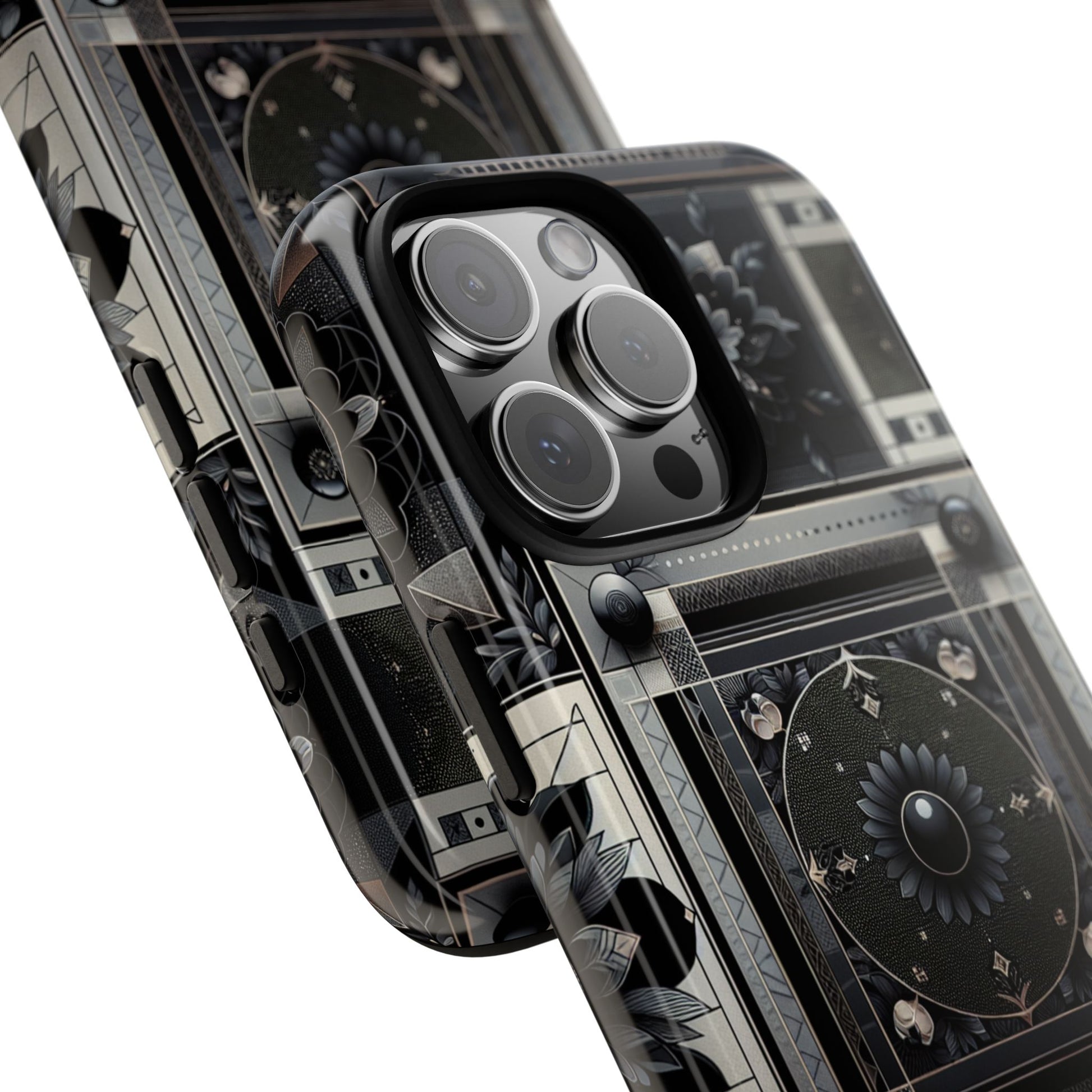 Pattern Image 4 Vibrant Shockproof Phone Case for Anime and Comic Fans, Geometric Black and Silver Design, Durable Protective Cover Compatible with iPhone 13, 14, 15 & 16 – all models including Pro, Pro Max & Plus