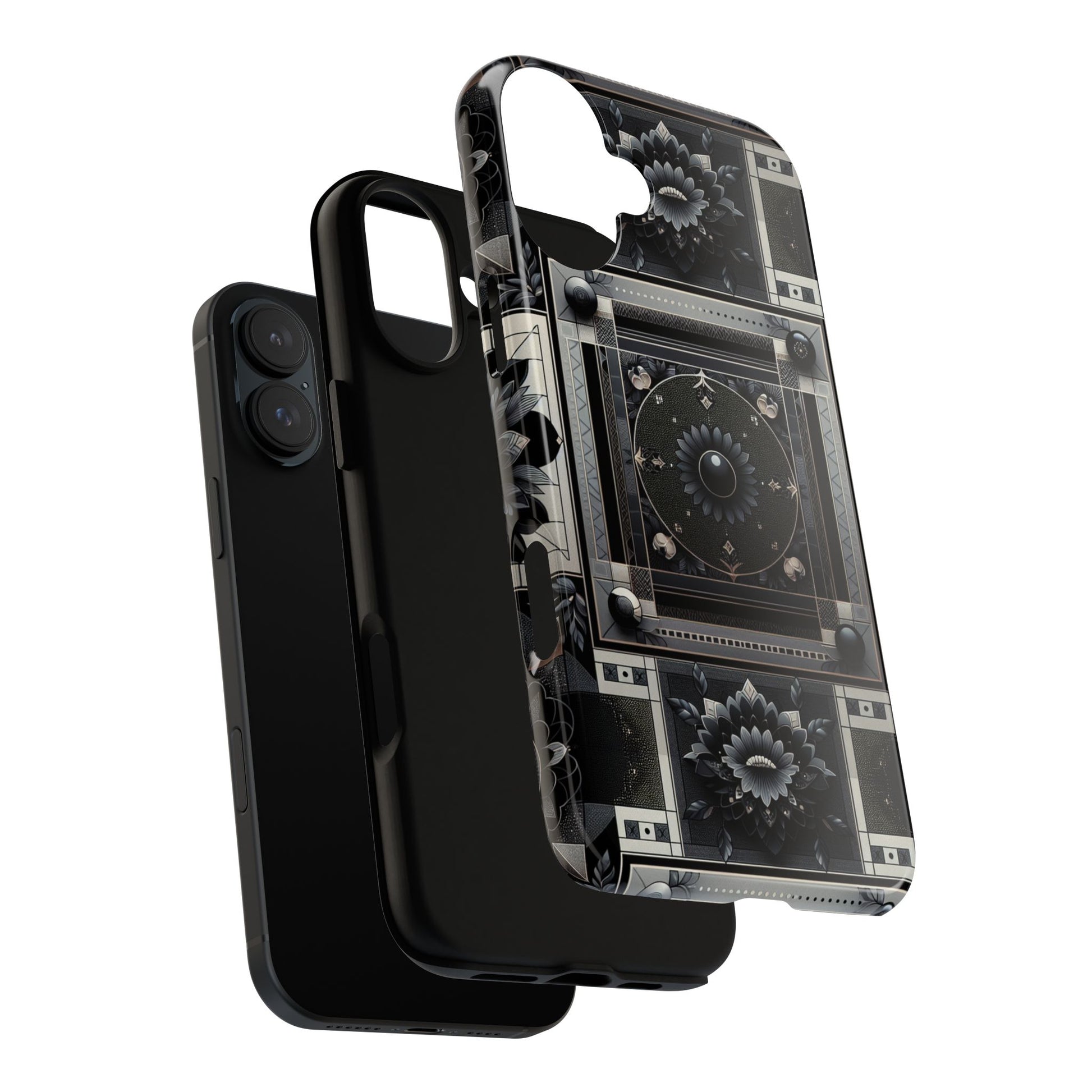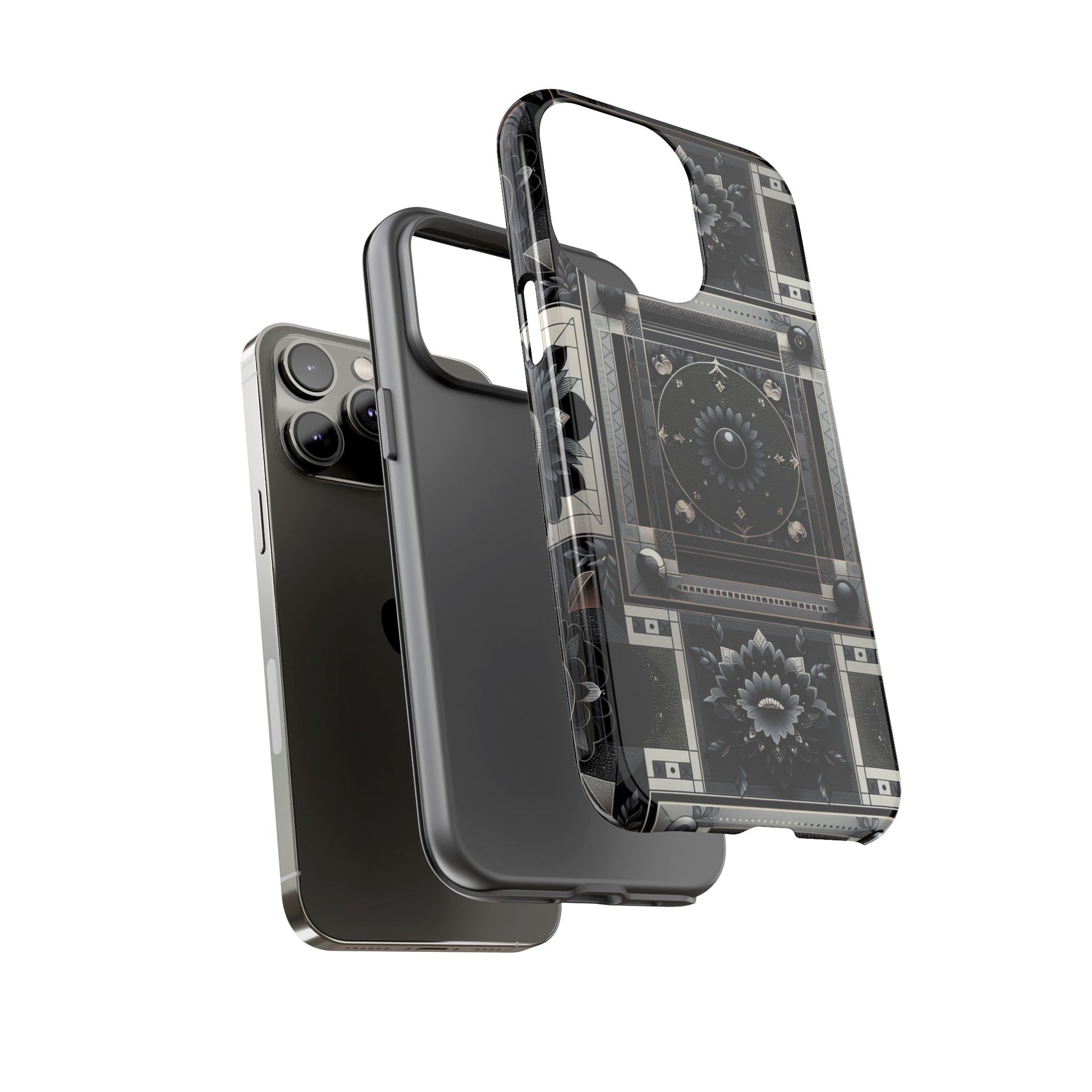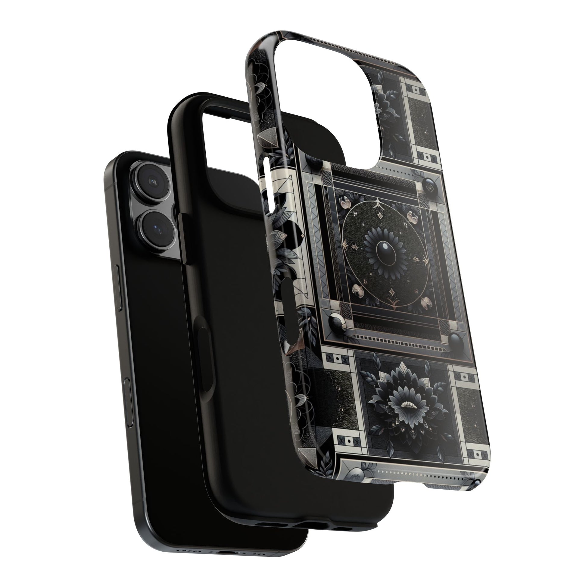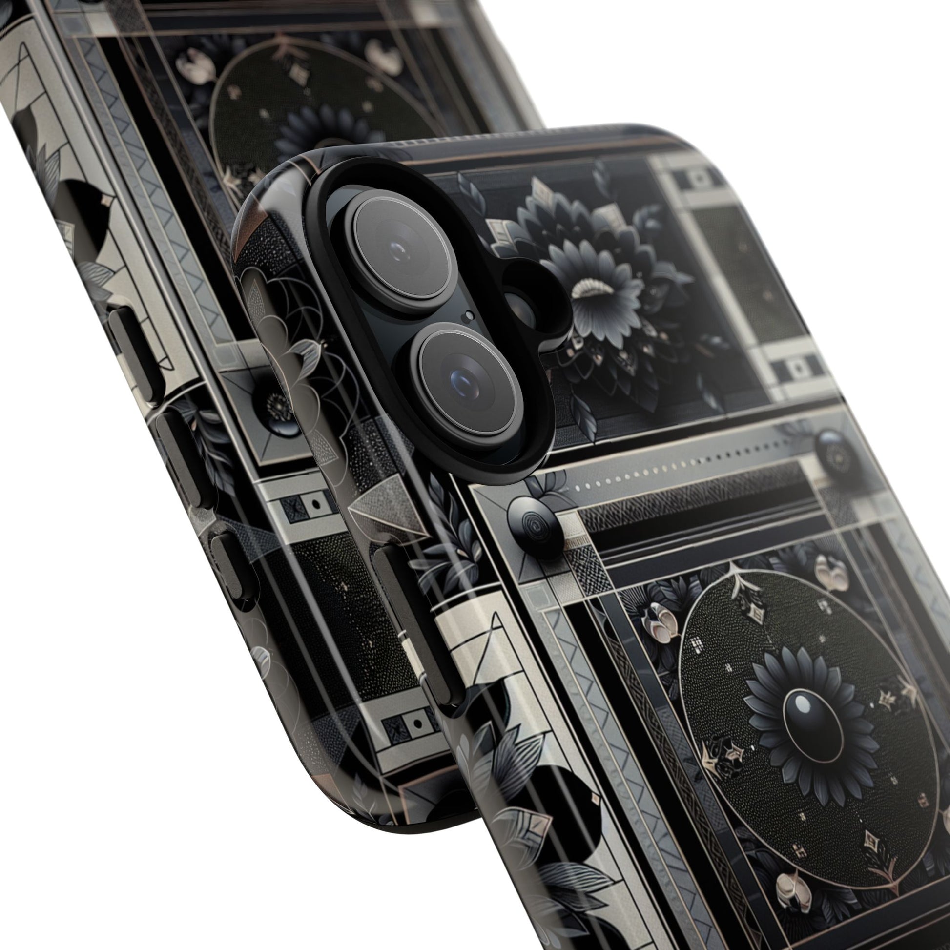 Pattern Image 4 Vibrant Shockproof Phone Case for Anime and Comic Fans, Geometric Black and Silver Design, Durable Protective Cover Compatible with iPhone 13, 14, 15 & 16 – all models including Pro, Pro Max & Plus