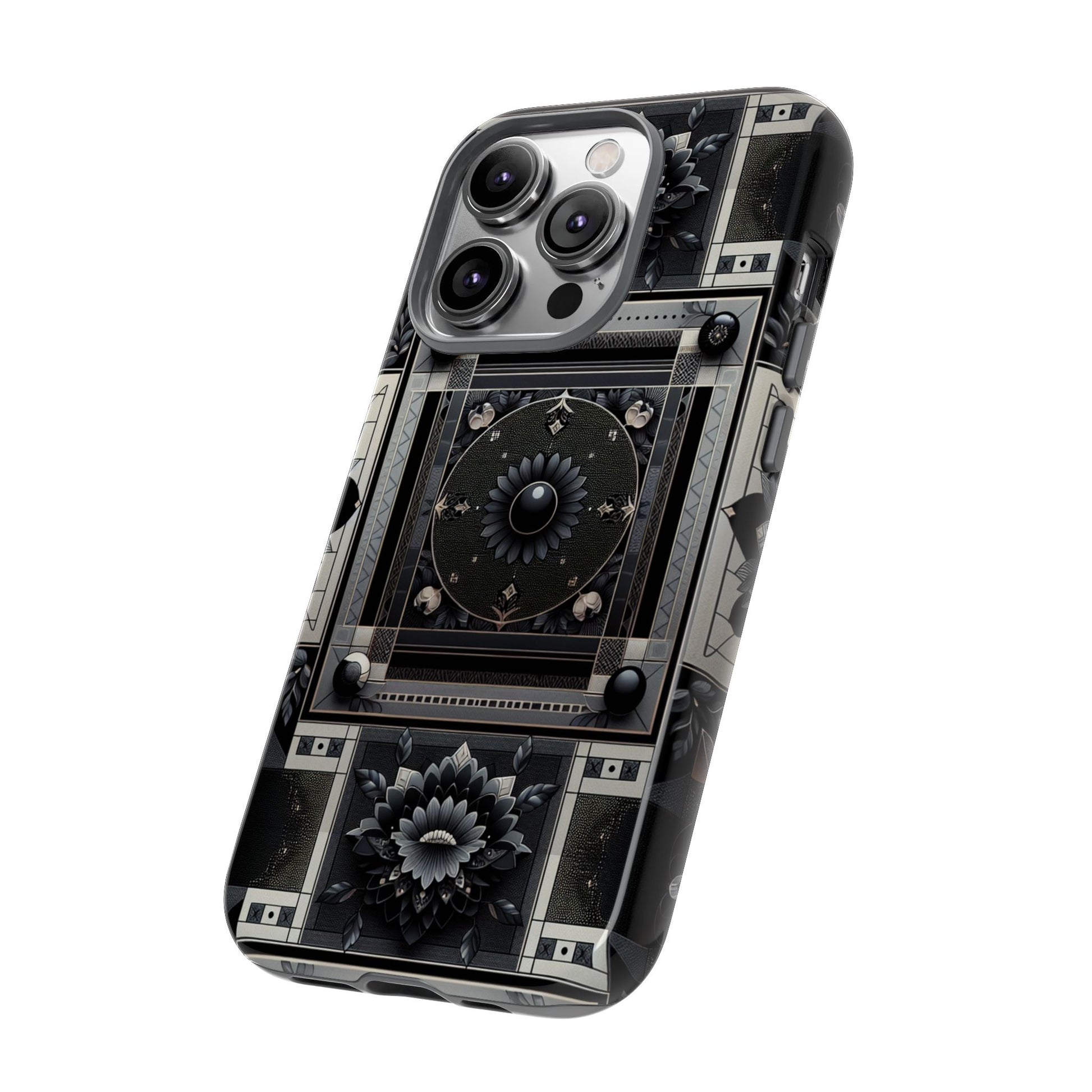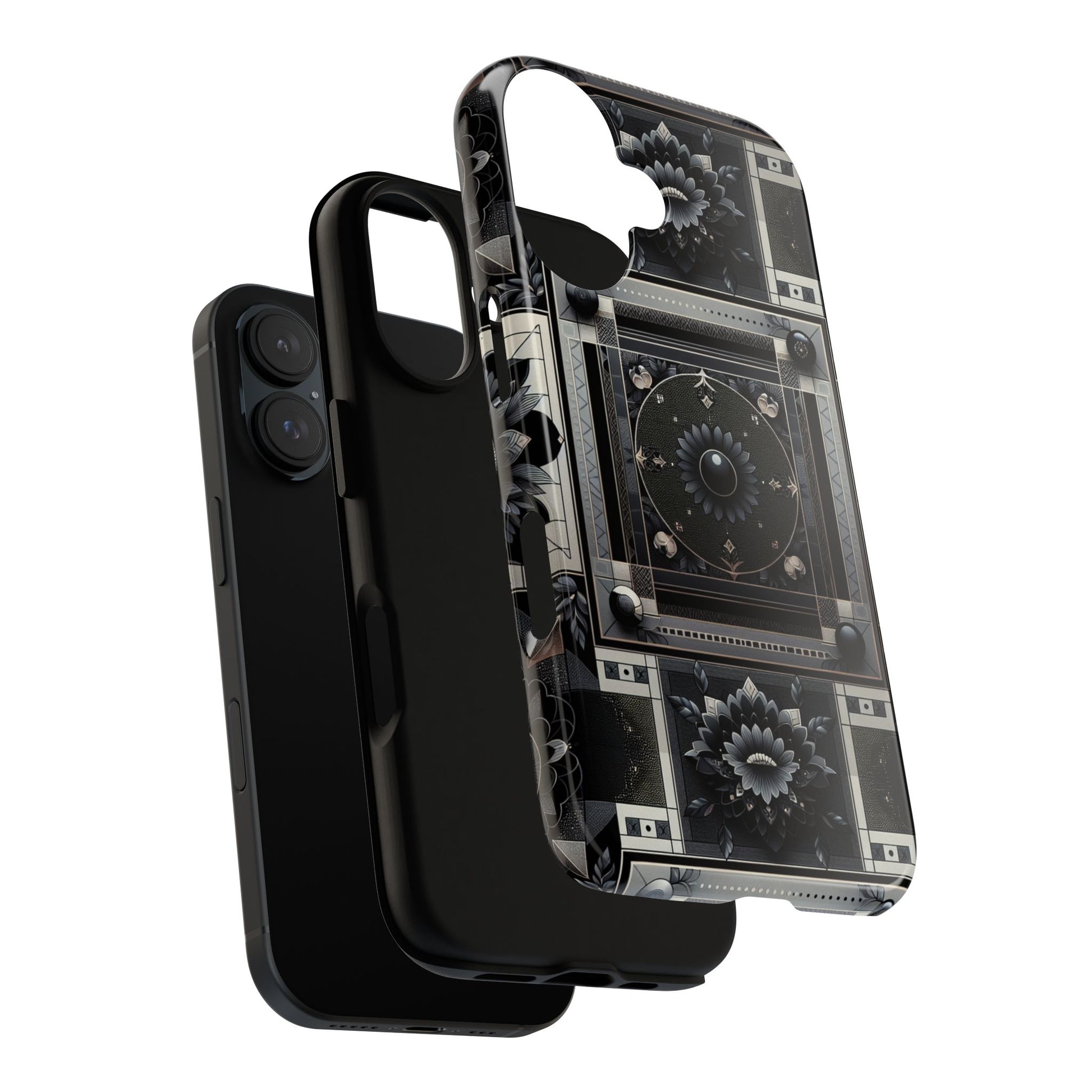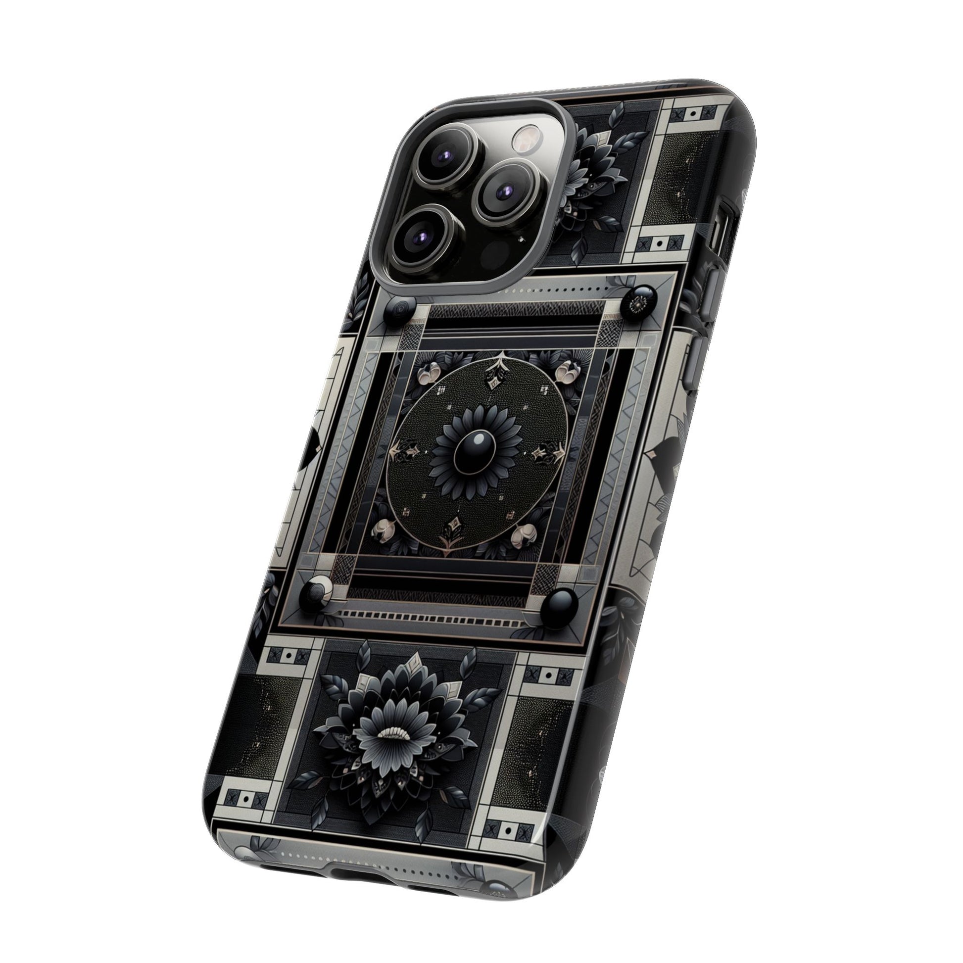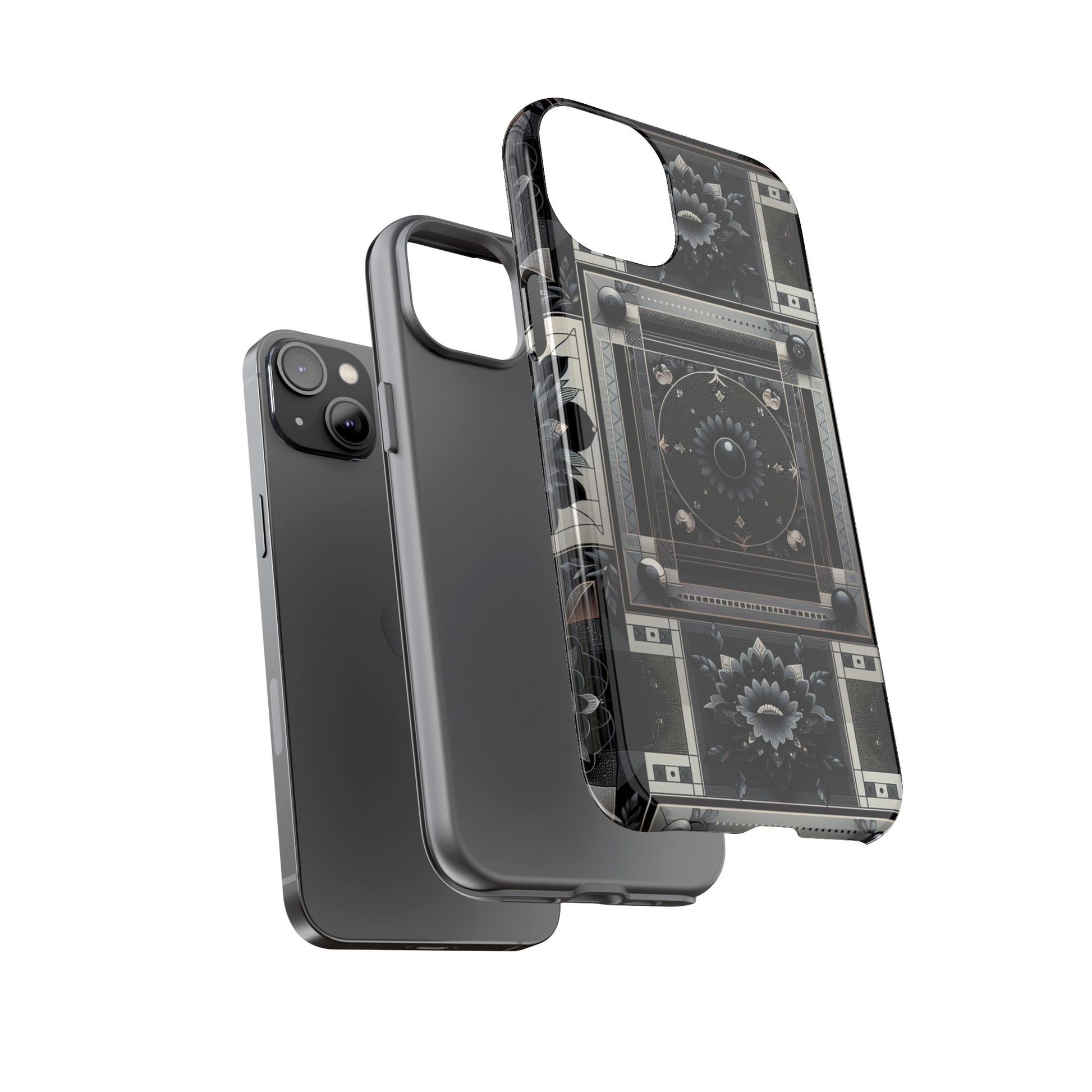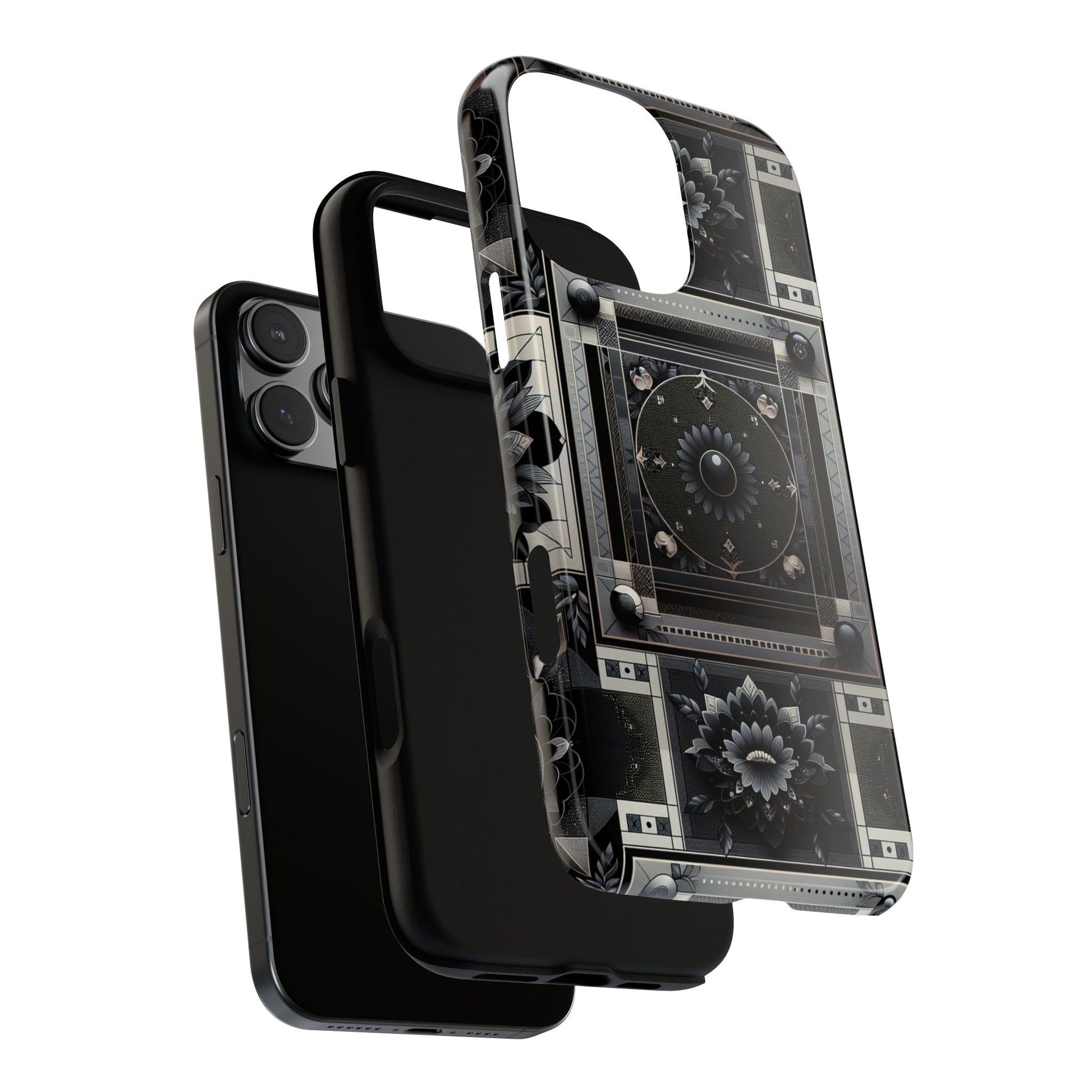Pattern Image 4 Vibrant Shockproof Phone Case for Anime and Comic Fans, Geometric Black and Silver Design, Durable Protective Cover Compatible with iPhone 13, 14, 15 & 16 – all models including Pro, Pro Max & Plus