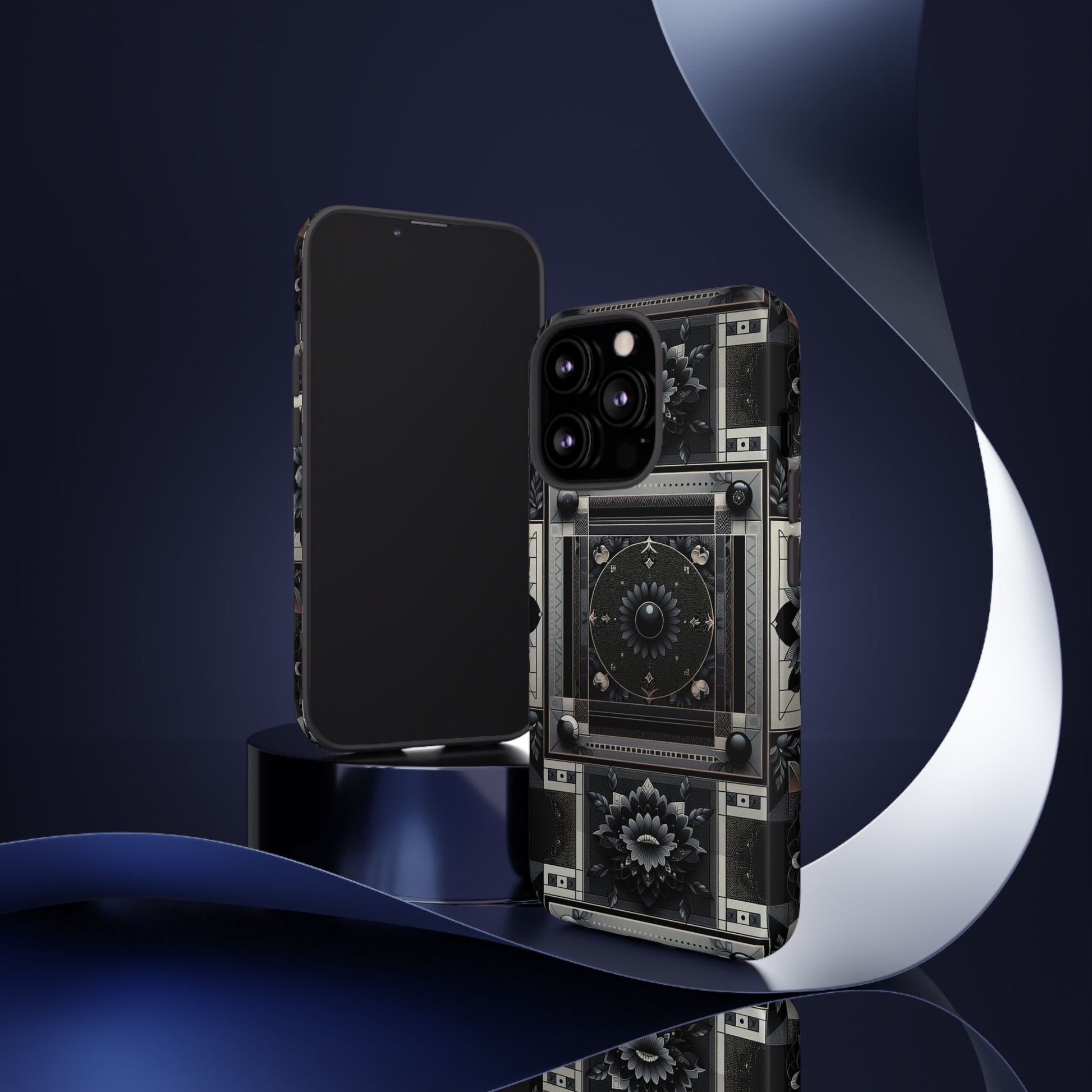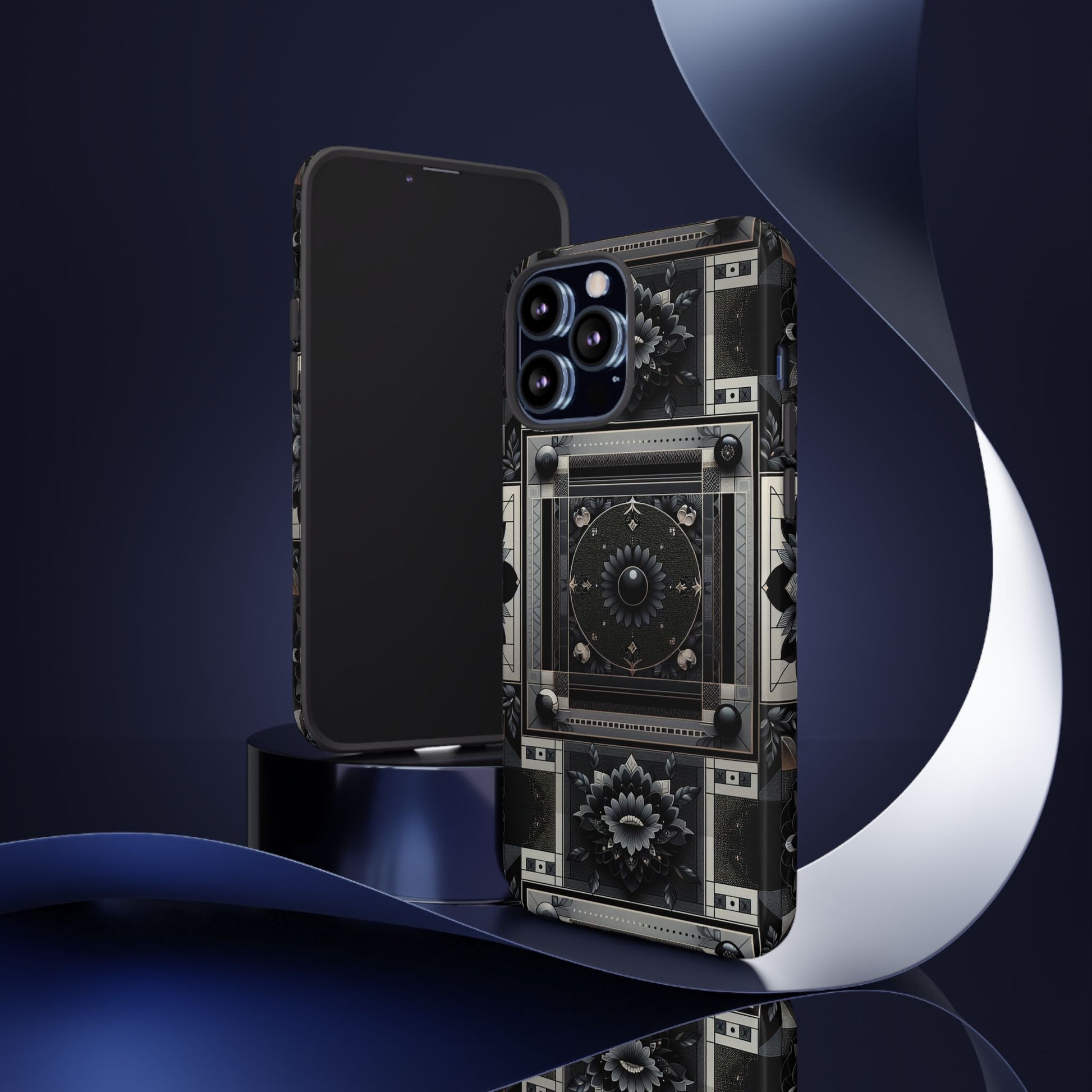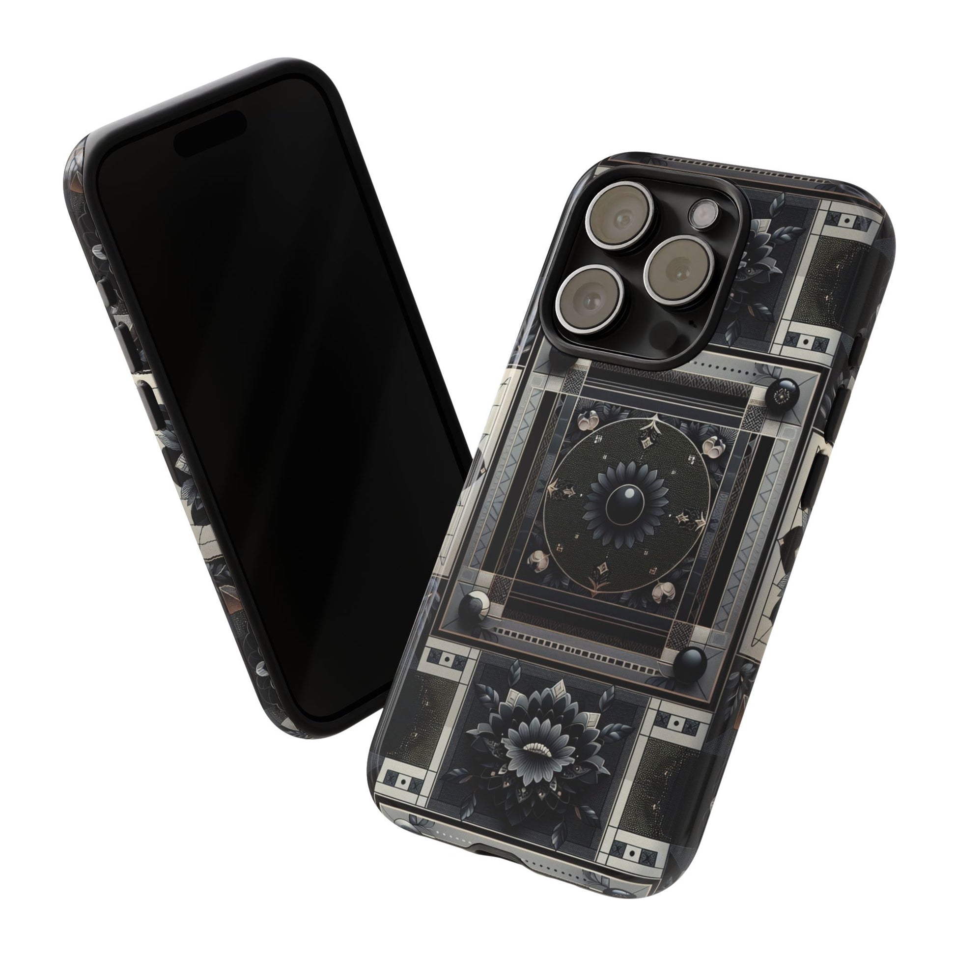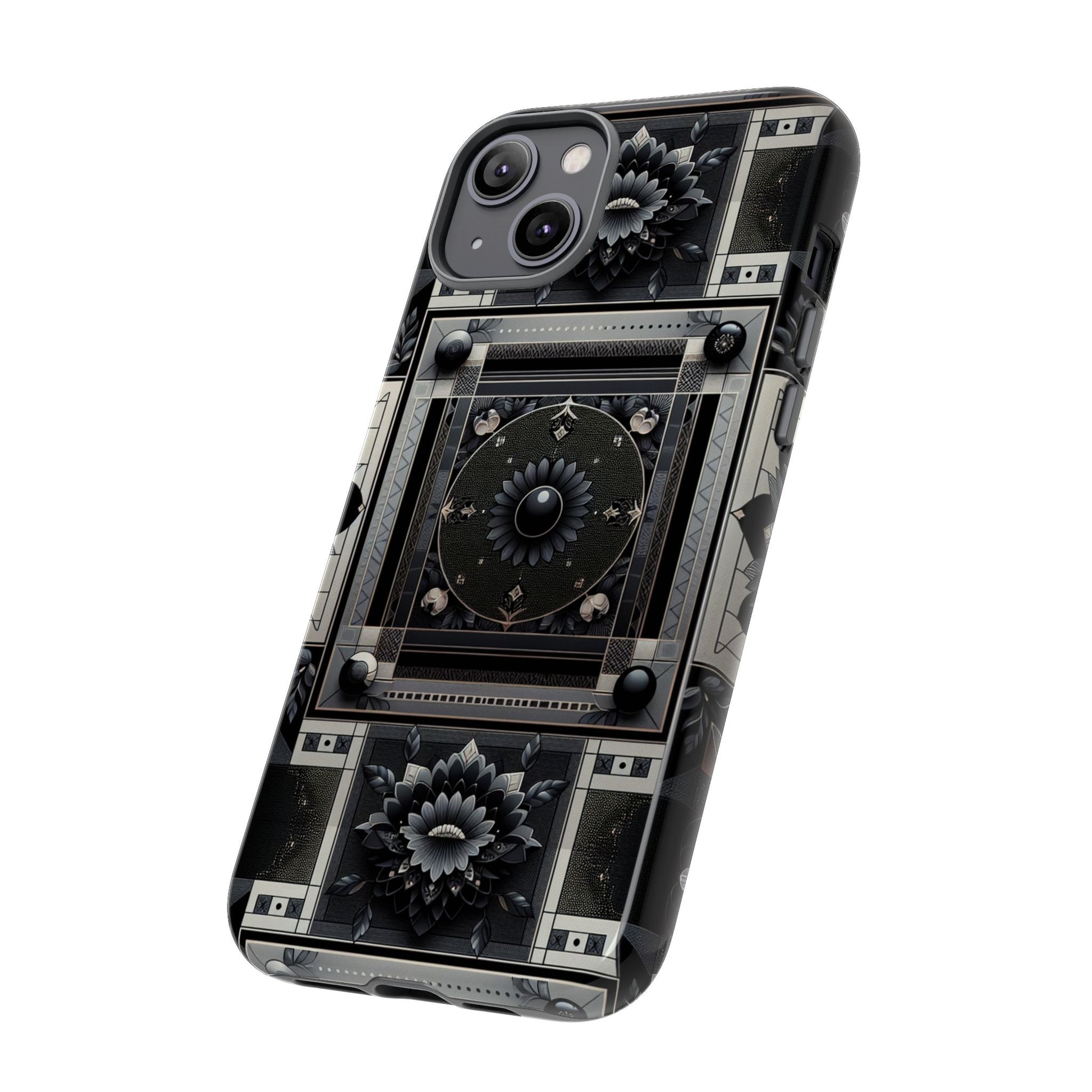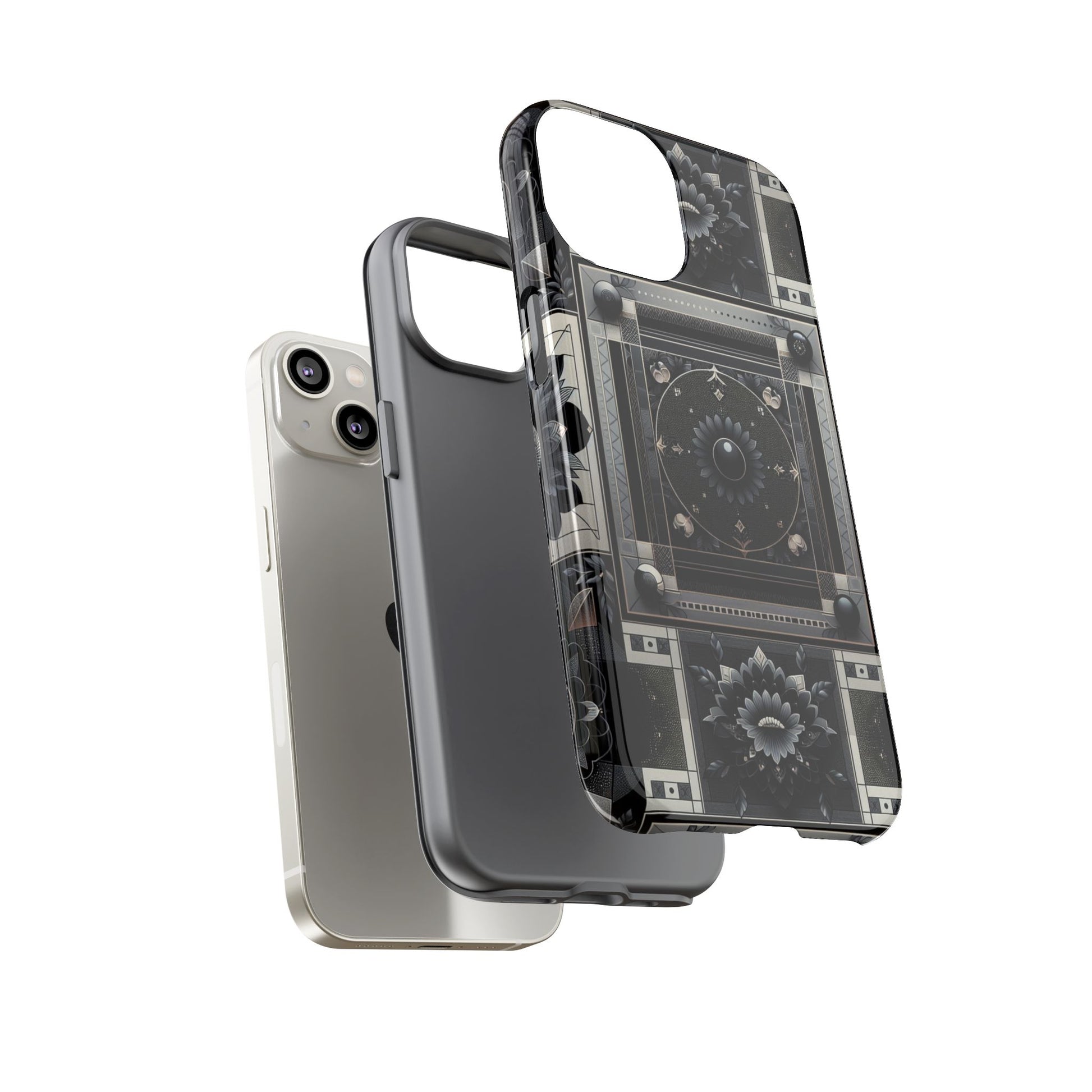 Pattern Image 4 Vibrant Shockproof Phone Case for Anime and Comic Fans, Geometric Black and Silver Design, Durable Protective Cover Compatible with iPhone 13, 14, 15 & 16 – all models including Pro, Pro Max & Plus